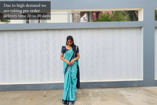 Traditional Wax Round Sungudi Cotton Saree with Blue and Black Rudrcham Border - Preorder