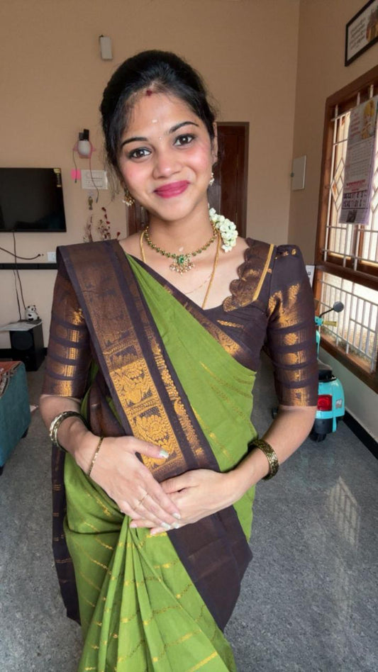 Silver zari Saree with Brown and Black Border Sungudi saree
