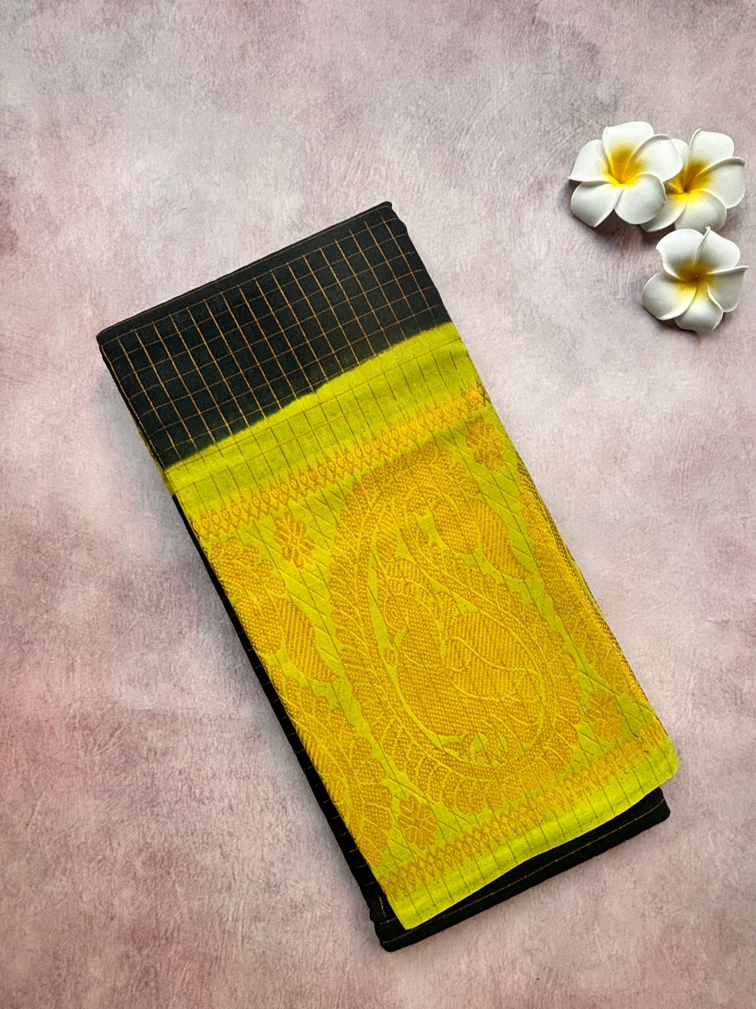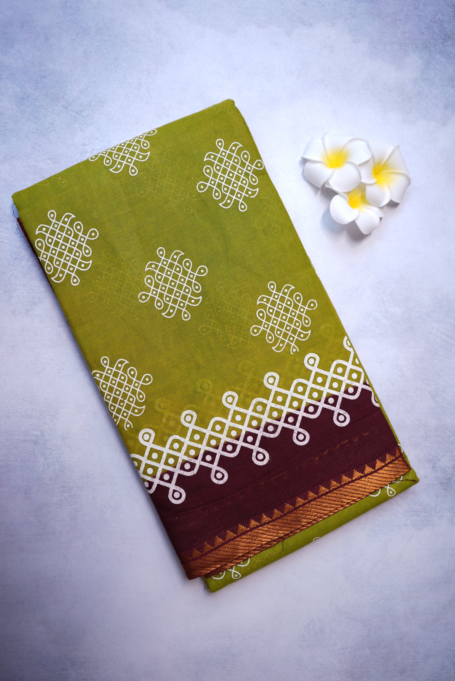 Discover the timeless elegance of traditional handloom artistry with our Tamil Printed...