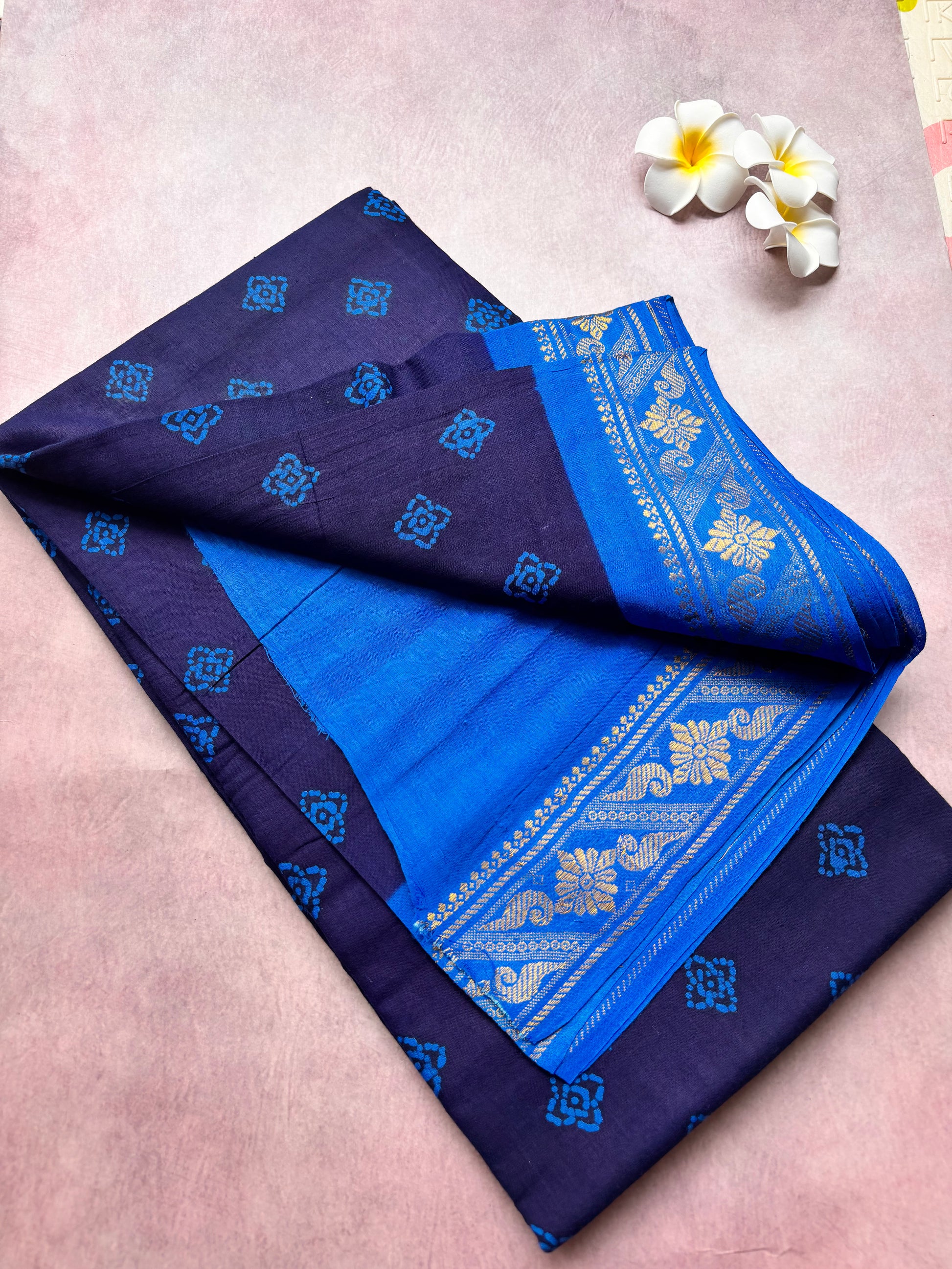 Authentic Soft Sungudi Cotton Saree – Blue with Heart Motifs & Blue Border
