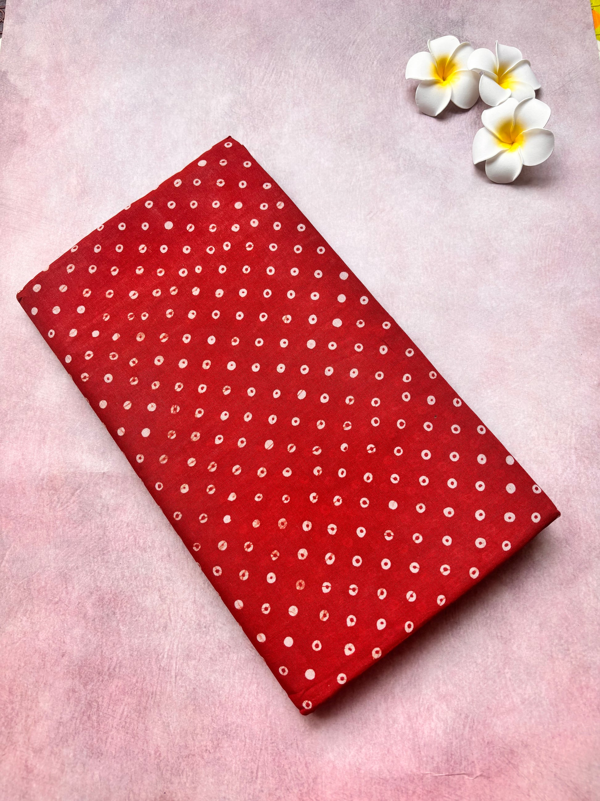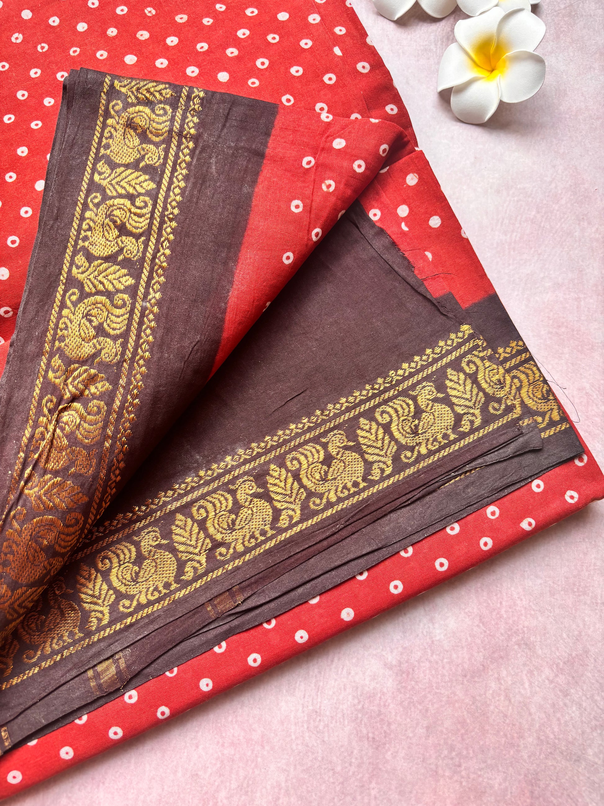 Authentic Soft Sungudi Cotton Saree – Red with White Pulli & Black Border