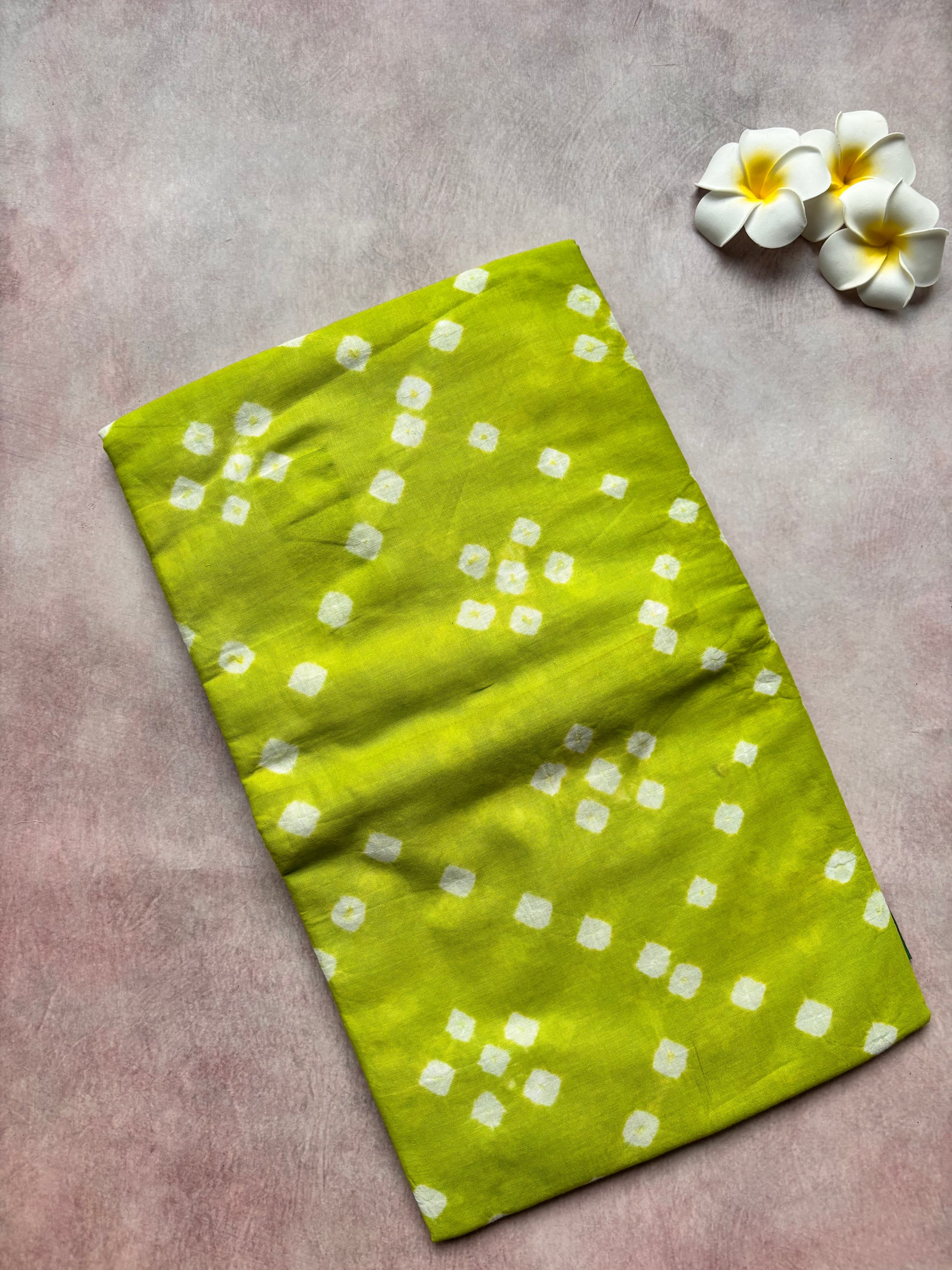 Hand-Knotted Bhandhini Sungudi Cotton Saree – Parrot Green with Dark Green Border (With Blouse)