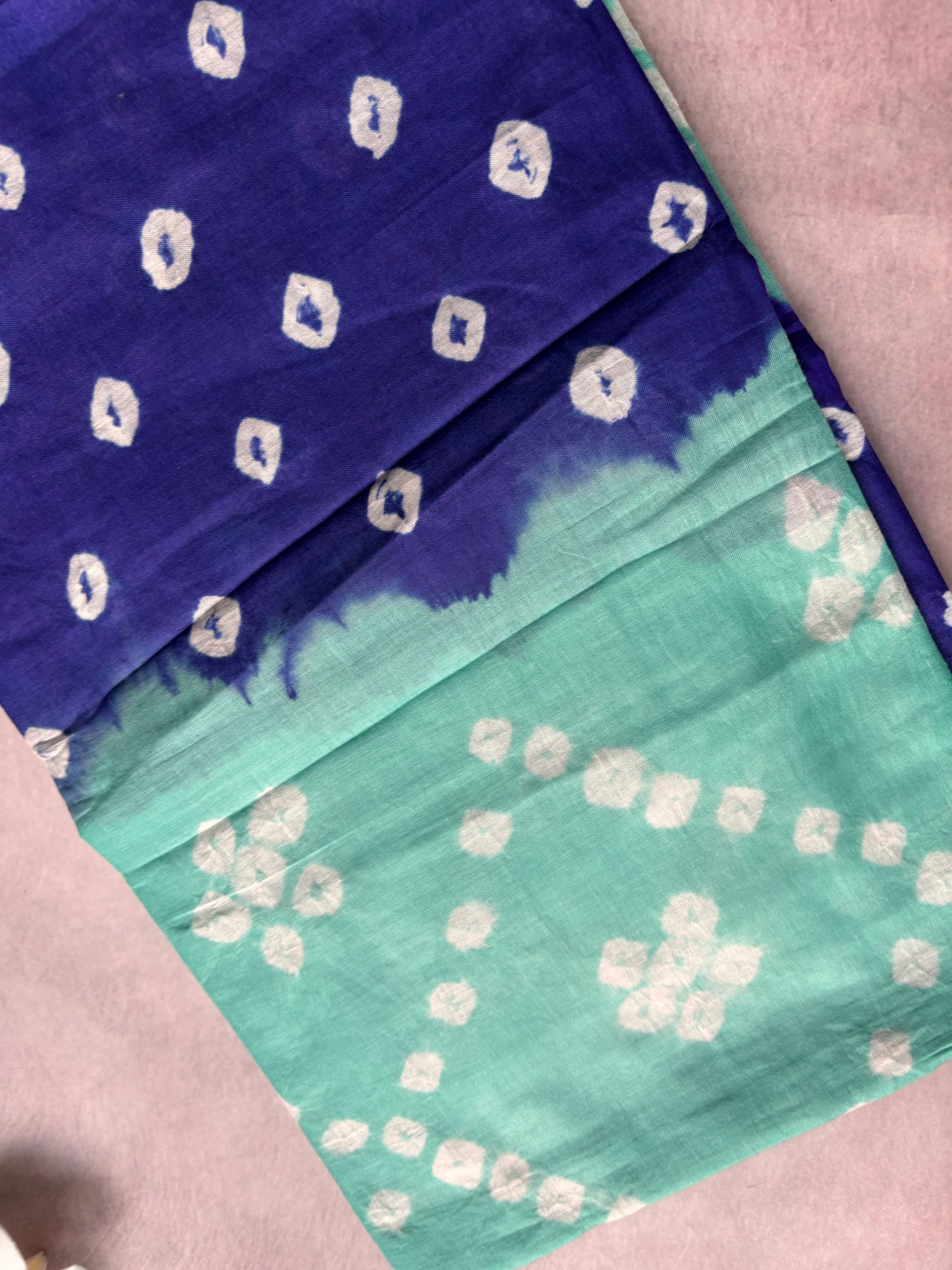 Hand-Knotted Sungudi & Bandhini Cotton Saree – Blue and Royal Blue Mix (With Border & Blouse)