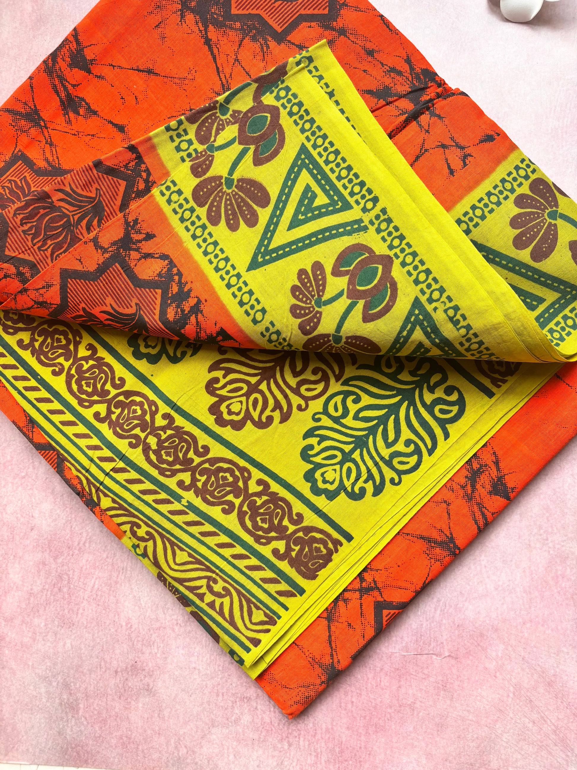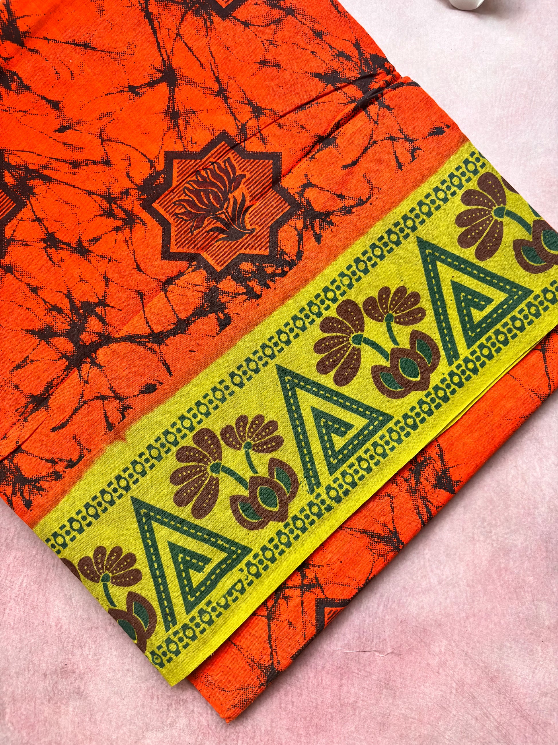 Handcrafted Madurai Sungudi Cotton Saree in Vibrant Sunset Orange – Office Wear Special (with Blouse Piece)