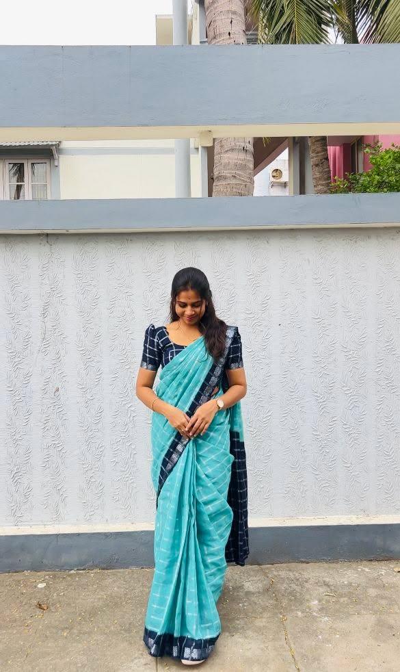 kindly note: Sungudi sarees are 100% hand-made, so small natural imperfections like tiny mud marks or slight dye spread may be present. These are not defects but the true beauty and authenticity of handloom weaving. Each saree is unique 💛