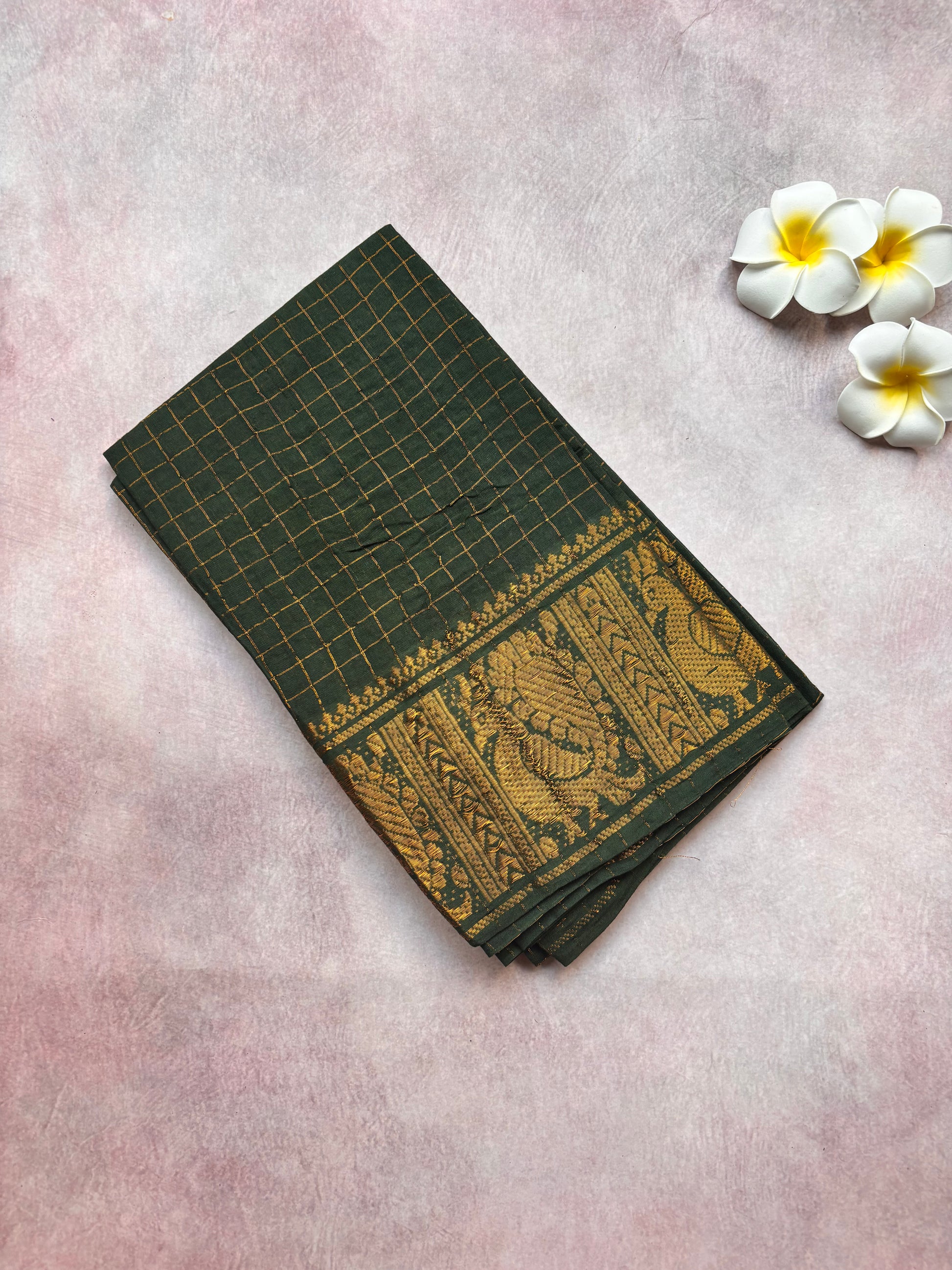 Add a vibrant touch to your collection with this Pink Kattam Sungudi Cotton Saree, featuring a striking green border. Handwoven in Madurai, this saree showcases the authentic charm of Sungudi cotton sarees, known for their soft texture, lightweight comfort, and timeless elegance.