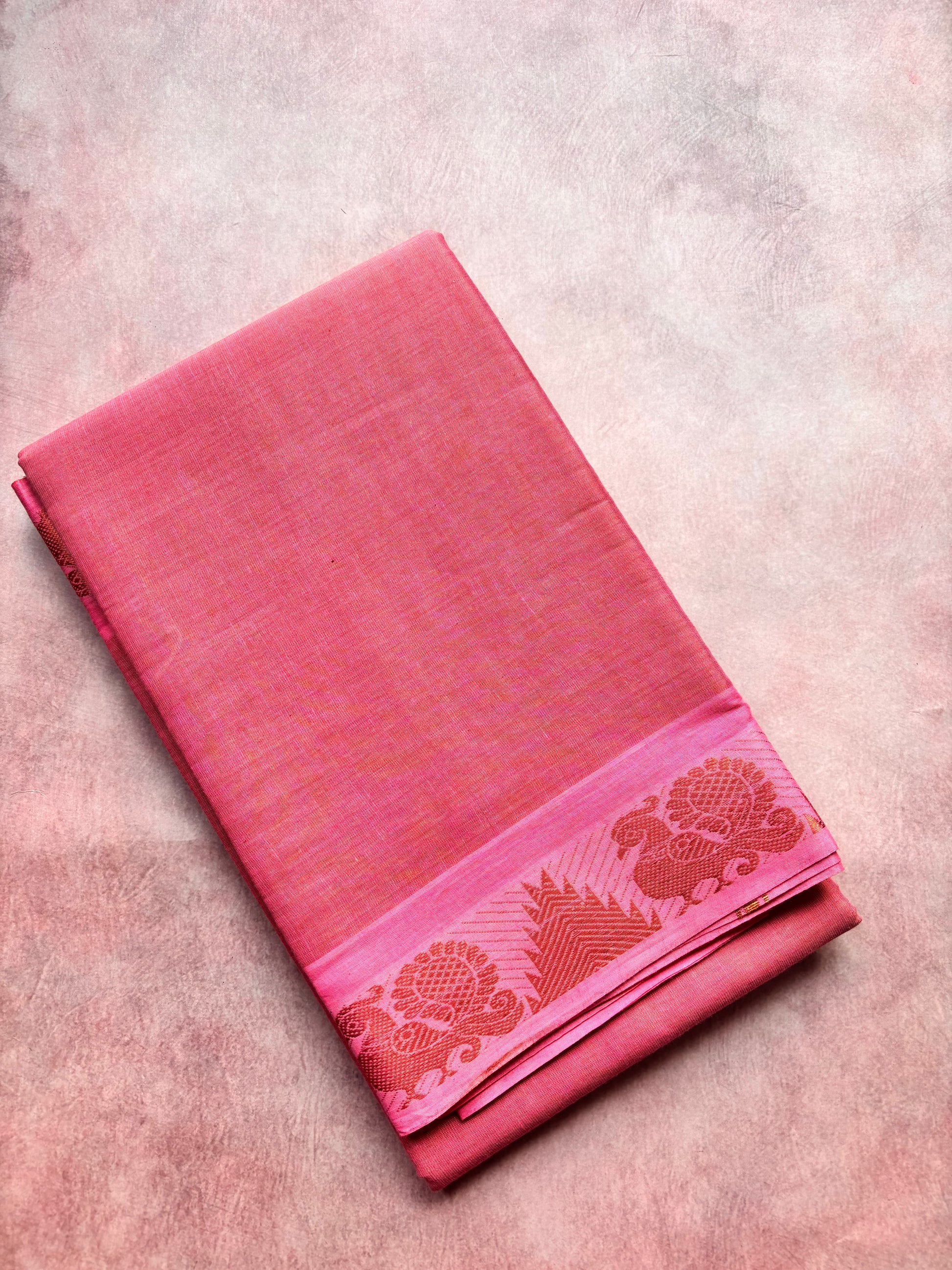 ✨ Pink Tissue Sungudi Saree – Soft Cotton | Small Border | Handcrafted Madurai Sungudi | TLL002