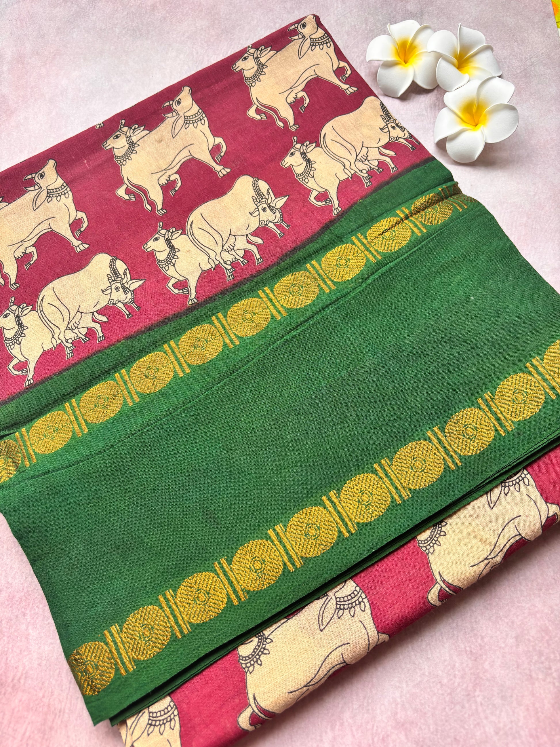 Soft Madurai Sungudi Cotton Saree – Pichwai Pattern with Rettapet Border & Green Dollar Design Border