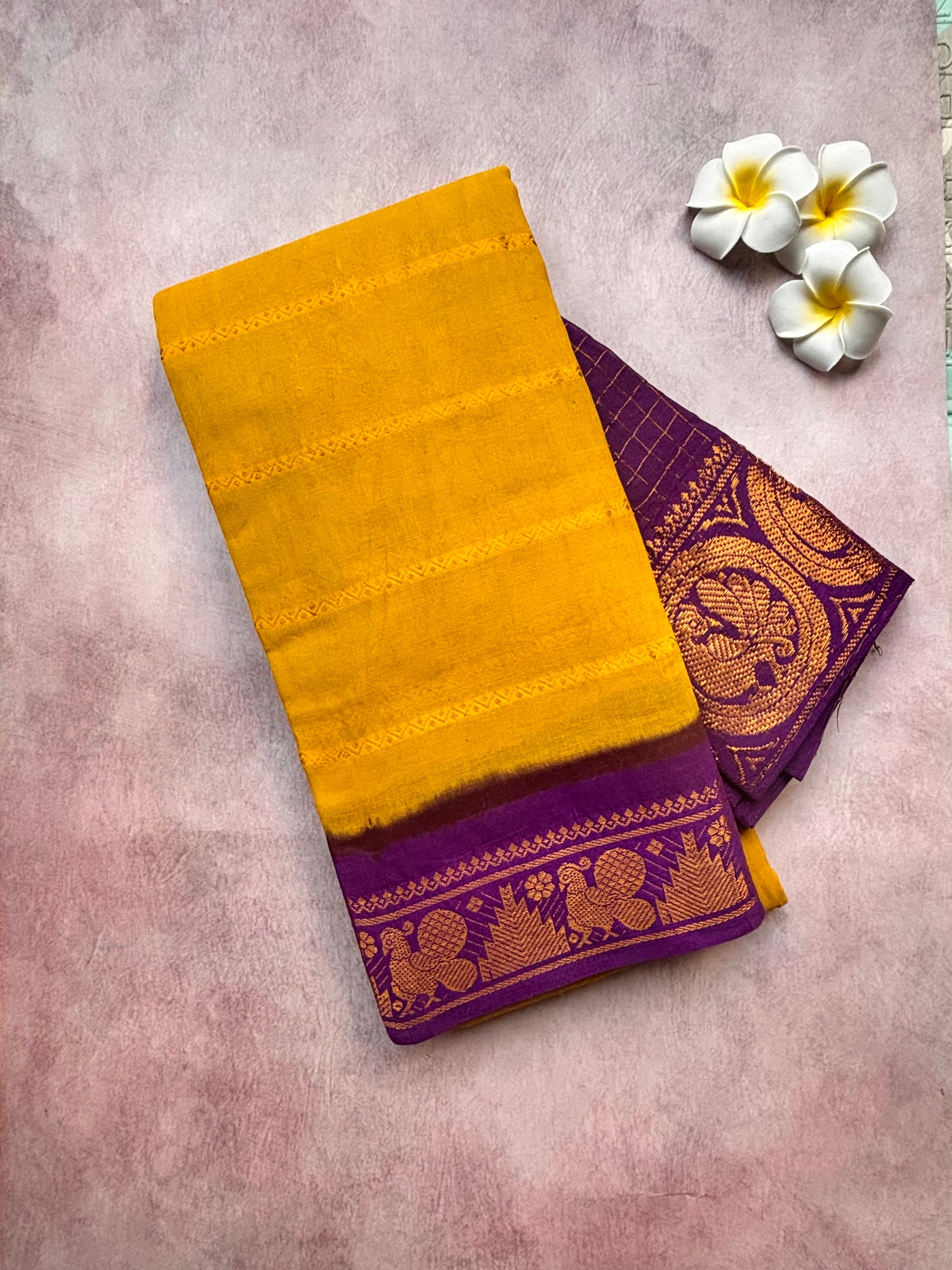 Bring elegance and tradition together with this Venthaya-coloured Sungudi Cotton Saree, beautifully highlighted by a violet border. Handwoven in Madurai, this saree reflects the authentic artistry of Sungudi cotton sarees, offering breathable comfort, lightweight drape, and timeless style.